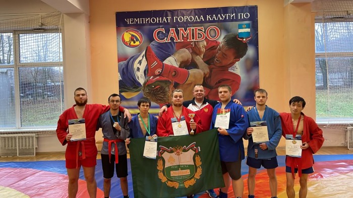 Серебро областного уровня: сборная филиала по самбо — вторая среди вузов Калужской области 27 ноября в спортивном комплексе «Юбилейный» состоялись соревнования по самбо в зачет областной Спартакиады. В борьбу за медали вступили семь сильнейших студенческих команд региона. Напряженная конкуренция развернулась между командой нашего филиала, МИФИ ИОТЭ и КФ РГАУ-МСХА имени К.А. Тимирязева. В упорной борьбе наши самбисты проявили настоящий характер и высокое спортивное мастерство, что в итоге принесло команде почетное второе место в общем зачете. Мы поздравляем наших призеров в личном первенстве: · до 53 кг: Владимир Ким — 1 место; Даниил Соколов — 3 место. Администрация филиала выражает благодарность всем спортсменам, кто защищал честь учебного заведения. Ваш успех — это результат упорного труда . Желаем не останавливаться на достигнутом и покорять новые спортивные вершины!