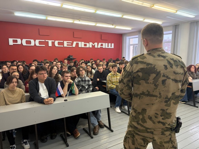 В преддверии Дня защитника Отечества сотрудники Росгвардии провели урок мужества для студентов Филиала. Это не скучная лекция, а встреча с реальными людьми, чья жизнь и профессиональный путь стали примером стойкости, самоотверженности и преданности делу.
